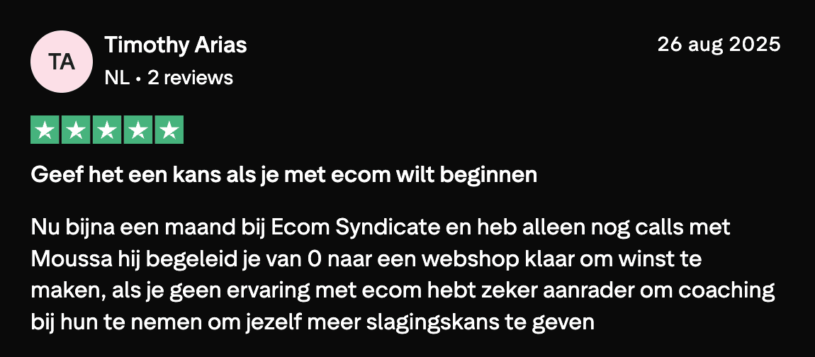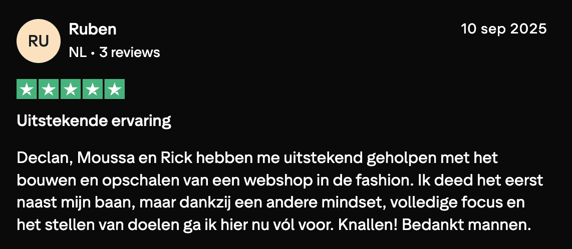 Bij Ecom Syndicate delen we alleen wat bewezen werkt, in onze eigen merken, elke dag opnieuw. Geen hype, geen shortcuts. Wel een eerlijk pad voor wie bereid is het werk erin te stoppen.