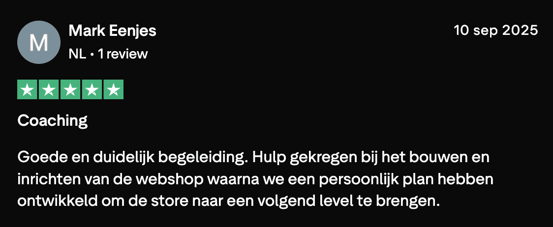 Je bouwt stap voor stap je store en merk, met directe begeleiding.